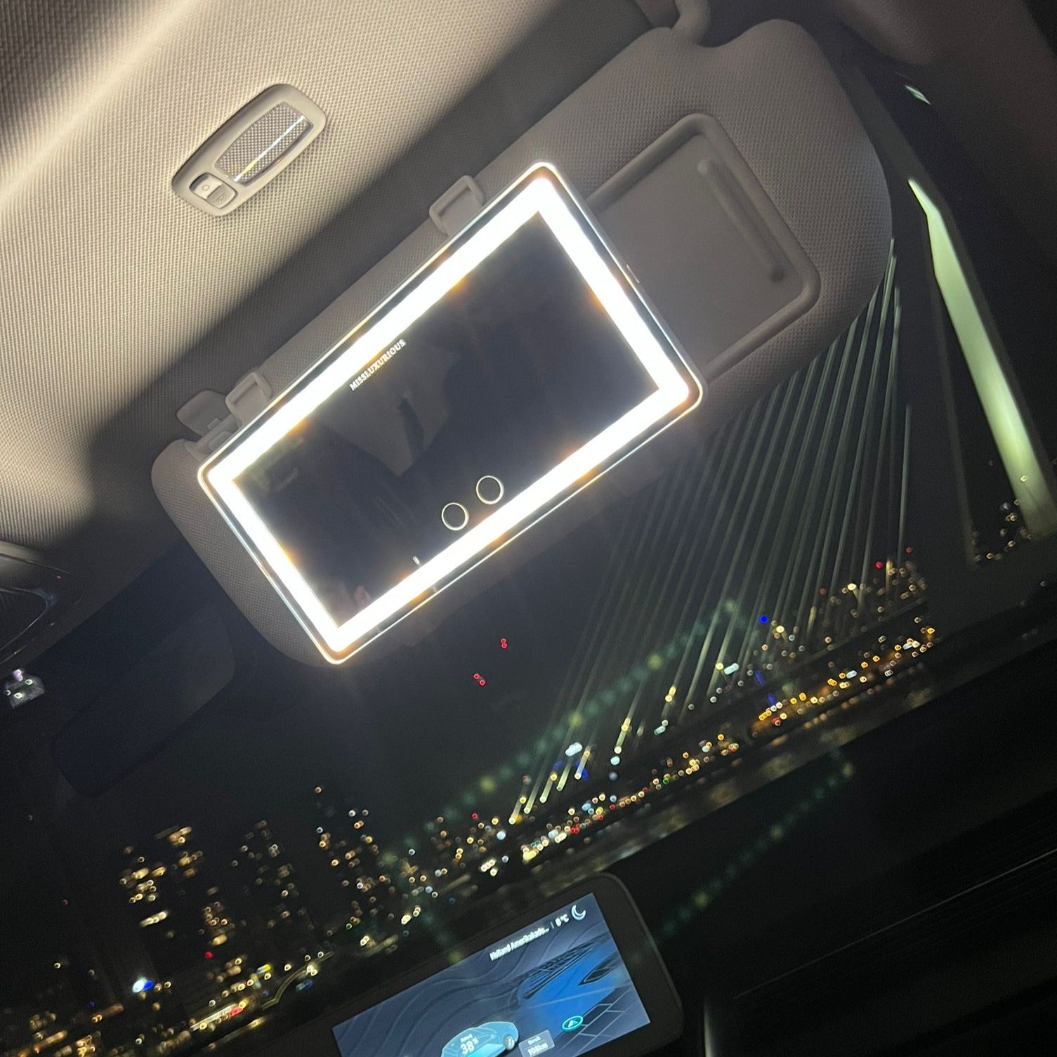 It's always nice to do or touch up your make-up in the car, especially if you can do that with the right lighting.