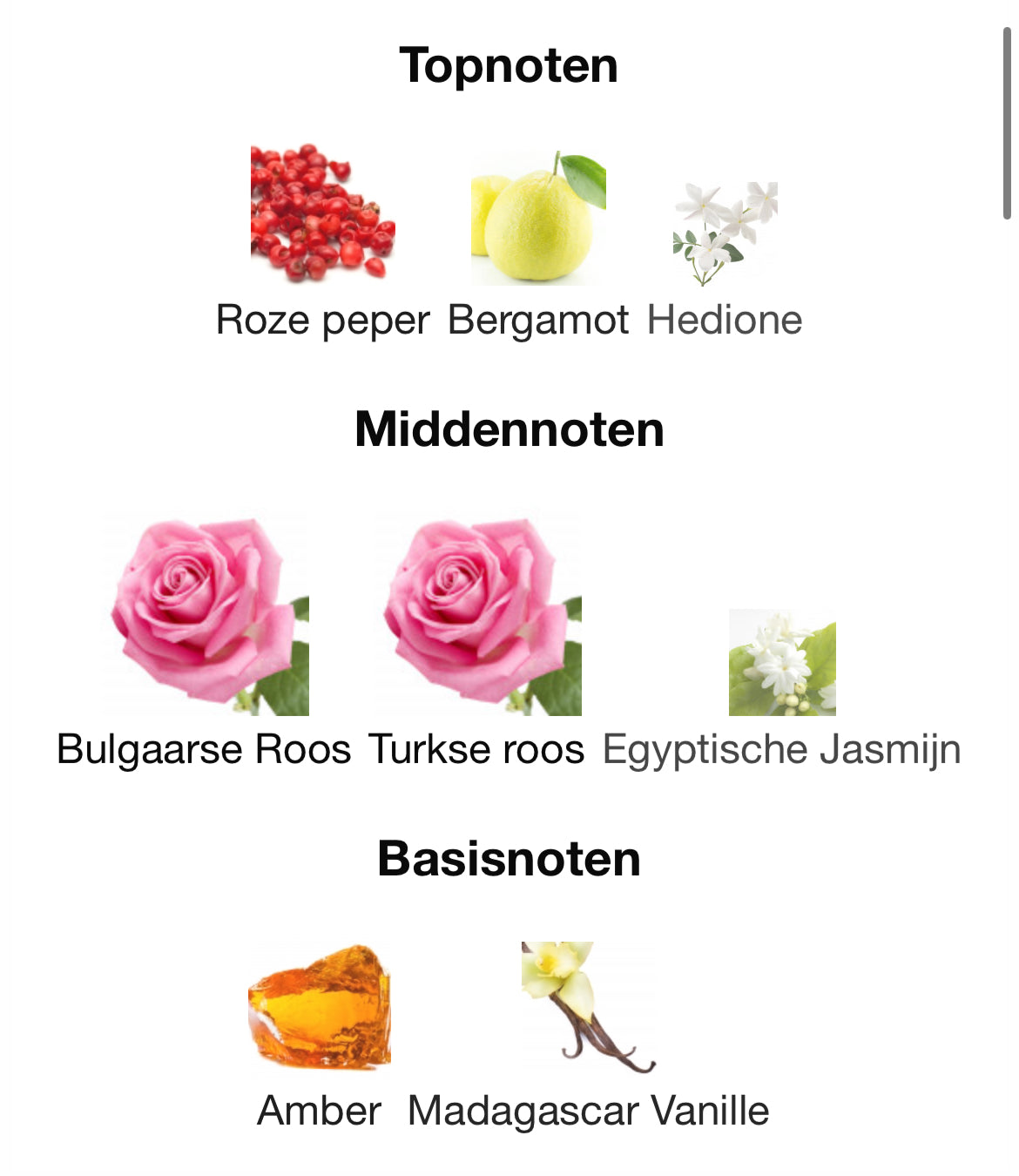 The fragrance opens with a burst of bergamot and pink pepper, giving it a fresh yet spicy edge. As it develops, the heart reveals an opulent bouquet of rose and jasmine, exuding elegance, romance, and intensity. Finally, the amber and vanilla base adds a creamy warmth that lingers on the skin, leaving behind an alluring and unforgettable trail.