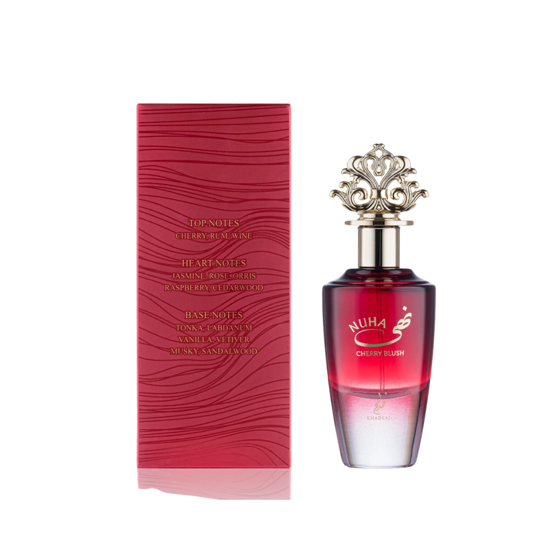 Indulge in the irresistible charm of Khadlaj Nuha Cherry Blush, a luxurious fragrance that captivates the senses with its bold and alluring blend.
