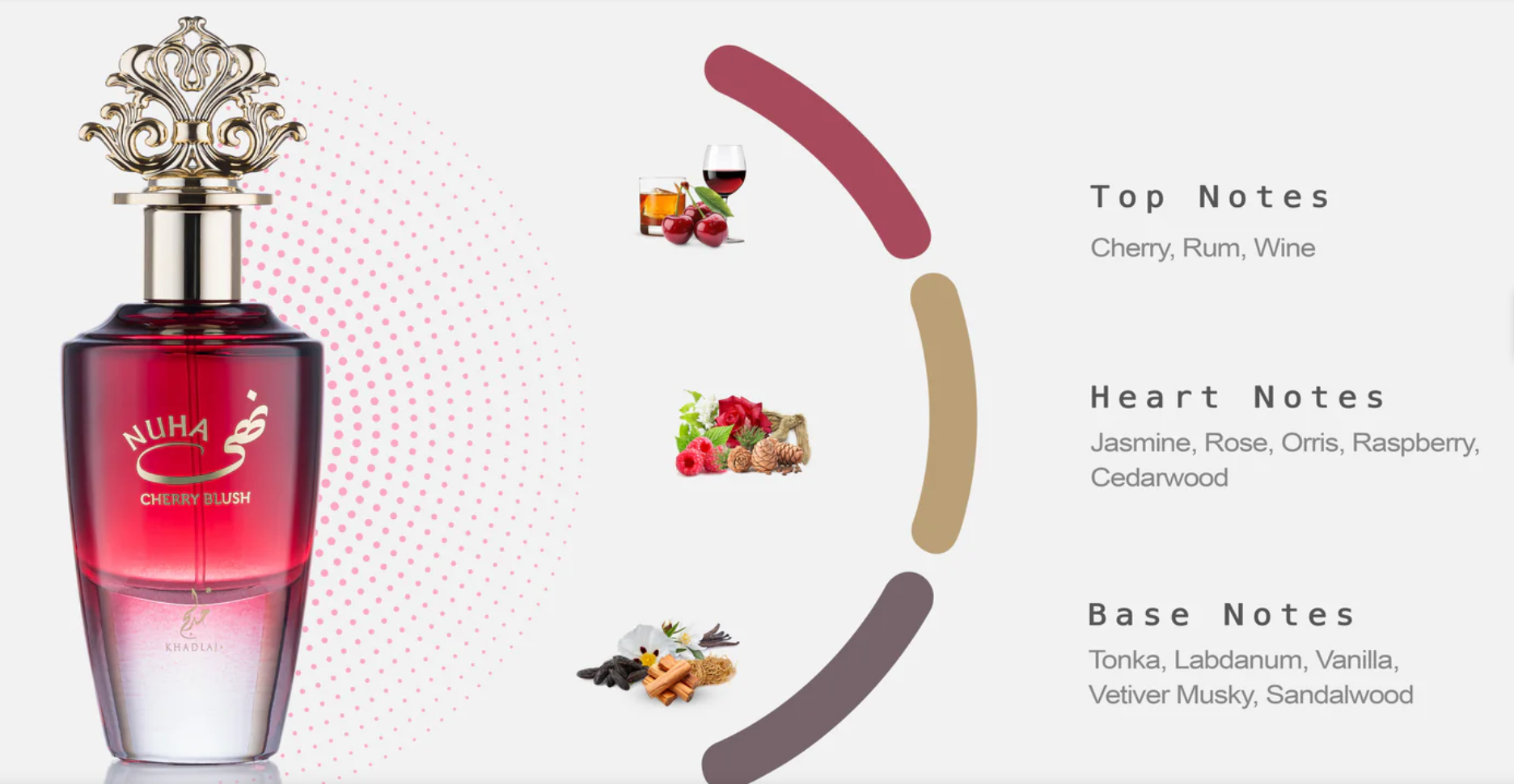 Experience passion in every spritz—Khadlaj Nuha Cherry Blush is the perfect fragrance for those who dare to be unforgettable.